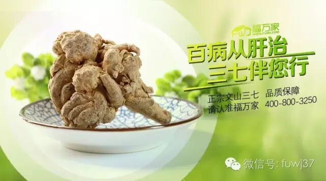 人生在世总少不了迎来送往的应酬,有必要的和没必要的,各有各的说词。仔细一琢磨,总觉得大多是浪费时间,消费人的精力。想要拓展社交圈子都需要应酬,至于应酬为了什么,心里总有应酬的理由。当然,应酬总免不了抽烟喝酒,大鱼大肉,久而久之肝脏开始漏洞百出。 近几年,从医疗机构有关统计数字表明,高血压、痛风、酒精肝等多种疾病呈年轻化趋势,眼下年轻人,特别是年轻白领,已经成了高血压的新“生力军”,占了高血压病人的20%,因应酬过多,喝酒引起的疾病也越来越多,当中最主要的就是“酒精肝”。想要了解更多加微信fuwj06,谢谢! 大量的临床实践和实验研究证实,三七的保肝作用是肯定的,肝脏是一个非常重要的脏器,很多病可以从肝脏不舒服折射出来,那就有这么一句话,百病从肝治,下面我们听听医院专家怎样说? 1、眼病 北京东直门医院眼科主任宋立:中医老讲:这个是肝开窍于目,而且足厥阴肝经,它是本经,是连着目系的,所以我们说肝经它和眼病有很大的关系,我们经常临床上通过疏肝理气,或者是滋补肝阴,或者柔肝养血各种方法来达到我们的治疗目的。 2、抑郁症 北京东直门医院神经内科主任邹忆怀:中医有一个病叫郁病,就和现在的抑郁有比较密切的关系,它主要原因,中医理论认为和肝气不疏密切相关,所以中医治疗的话,疏肝解郁是一个最重要的方法。 3、妇科病 北京东直门医院妇科刘雁鲜副主任医师说:中医认为肝主疏泄,主藏血,肝是喜柔和条达的,那么肝失疏泄,就可以引起很多妇科疾病的发生,比如说月经先后不定期,另外还可以引起痛经,因为冲任瘀阻,血脉不通畅了,就引起痛经,此外还可以引起闭经,月经不来了,甚至是盆腔炎,甚至是不孕症,这些疾病都和肝失疏泄有关系。 4、乳腺增生 原北京中医药大学东直门医院的院长郭维琴:女性的乳腺增生,跟经络走行有关系,肝经它是从脚开始的,到大腿的内侧,腹部的两侧,胸部的两侧,然后到头部,一直到巅顶,即头顶。因为它布于乳房这两侧,所以,在长期的心情不舒畅,也就是肝气郁结,不舒畅的情况下,血也就停滞了,停滞的时间长了以后就结成块,那就是乳腺增生。想要了解更多加微信fuwj06,谢谢! 三七能增加肝脏器官的血流量,改善肝脏微循环功能,保证细胞器氧和营养的供给,同时促进血液与肝脏之间交换的恢复,提高肝细胞的解毒、排毒功能,使损伤的肝细胞及其膜更易恢复,促进肝细胞的再生。 三七不仅能保肝护肝,对于降血压也是非常有效的: 三七中所含的三七皂苷和黄酮类等有效成分,能增加冠状动脉血流量,减慢心率,减少心肌氧消耗的作用。并有对抗因脑垂体后叶素所致的血压升高、冠状动脉收缩的作用。 少不了的应酬,更少不了的三七。身体是革命的本钱,每天一点三七,护住我们的“本钱”。建议您每天2次,每次3克,温水冲服,肠胃好的饭前用,肠胃不好的饭后用。 文山福万家正宗三七,多年品牌,质量有保障,真诚对待每一个客户,值得信赖。福万家,幸福千万家!健康一路伴你行! 文山福万家客服:15969298895 网址:www.fuwj.com 微信:fuwj06 或 15398769537 长按二维码识别微信订购